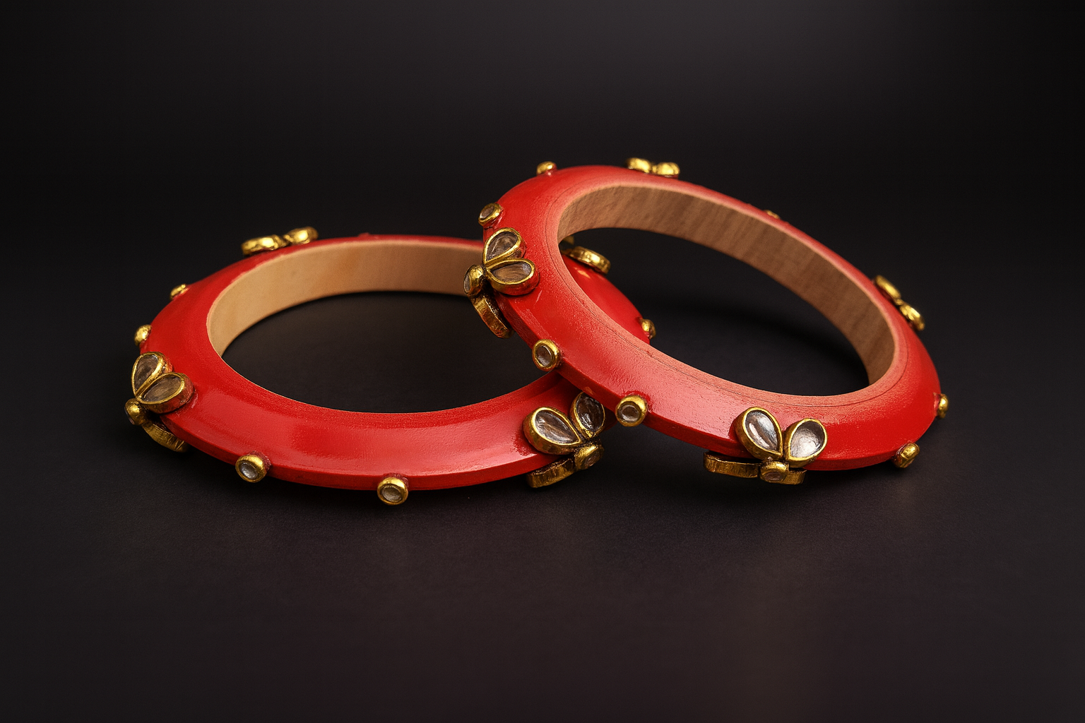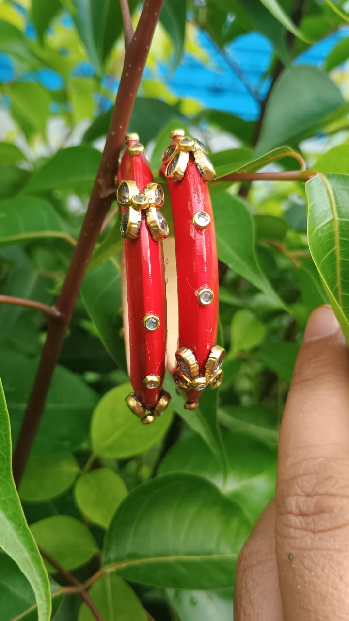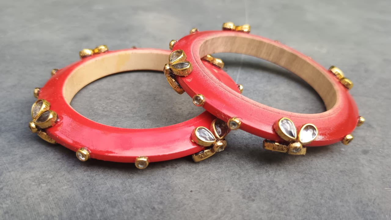 Elevate everyday elegance with this handcrafted enamel bangle, finished in a high-gloss lacquer that reflects a rich, premium sheen. Petal-shaped kundan clusters and crystal studs sit in a warm gold-tone setting, adding subtle sparkle without overpowering the look. The smooth inner core keeps it feather-light and comfortable for all-day wear, while the slim profile makes it perfect to wear solo or stacked. Choose from three saturated hues—Coral Red, Emerald Green, and Terracotta Orange—to match festive fits or add a pop of color to minimal outfits.